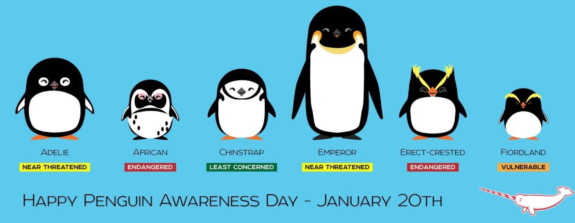 20 stycznia 2021 obchodzimy Dzień świadomości o pingwinach. To dzień, aby zatrzymać się na chwilkę i pomyśleć o tych bardzo lubianych zwierzętach!