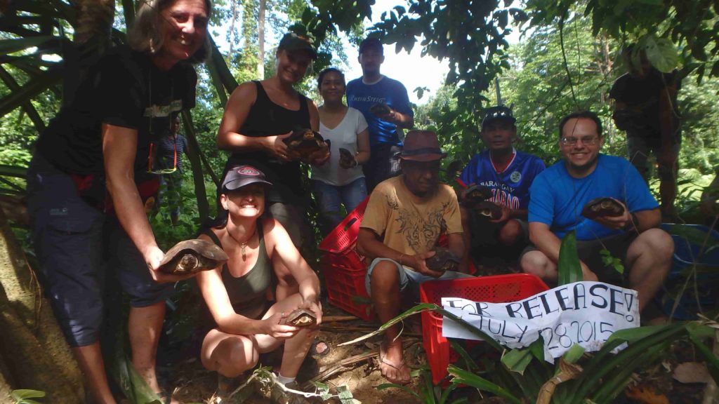 W czerwcu 2015 roku ruszyliśmy z pomocą czterem tysiącom żółwi skonfiskowanym na Filipinach na południu Palawanu. Najwięcej, bo 3748 należało do ginącego gatunku filipińskich żółwi leśnych (Siebenrockiella leytensis). To prawie połowa szacowanej liczebności populacji! Żółwie gromadzone były przez przemytników przez kilka miesięcy, więc ich stan był bardzo zły, były odwodnione, niedożywione i poranione. Zbudowanie basenów i opieka nad tak dużą ilością zwierząt przekraczały możliwości finansowe Filipińczyków. Żółwie trafiły do Fundacji KATALA i tam zaopiekowali się nimi weterynarze i biolodzy przybyli z całego świata. Wrocławskie Zoo wysłało na Palawan swoją doświadczoną opiekunkę gadów! Większość żółwi udało się uratować i zostały wypuszczone do środowiska naturalnego. Stale monitorowany jest ich stan w środowisku naturalnym. Miejsca wypuszczenia żółwi są ściśle tajne ze względu na ich bezpieczeństwo. Dużym sukcesem jest również rozmnożenie filipińskich żółwi leśnych w stacji Katala. Hodowla zachowawcza może stać się ratunkiem dla tych krytycznie zagrożonych wyginięciem żółwi.