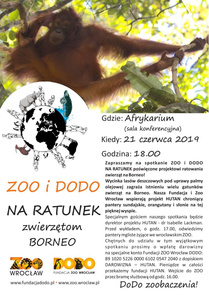 Zapraszamy serdecznie na spotkanie z cyklu: Zoo i Dodo na Ratunek! Widzimy się jak zwykle w Zoo Wrocław. To będzie naprawdę wyjątkowe spotkanie, zatem nie może Was zabraknąć! Z Borneo przyjeżdża do nas dr Isabelle Lackman, dyrektor projektu HUTAN.