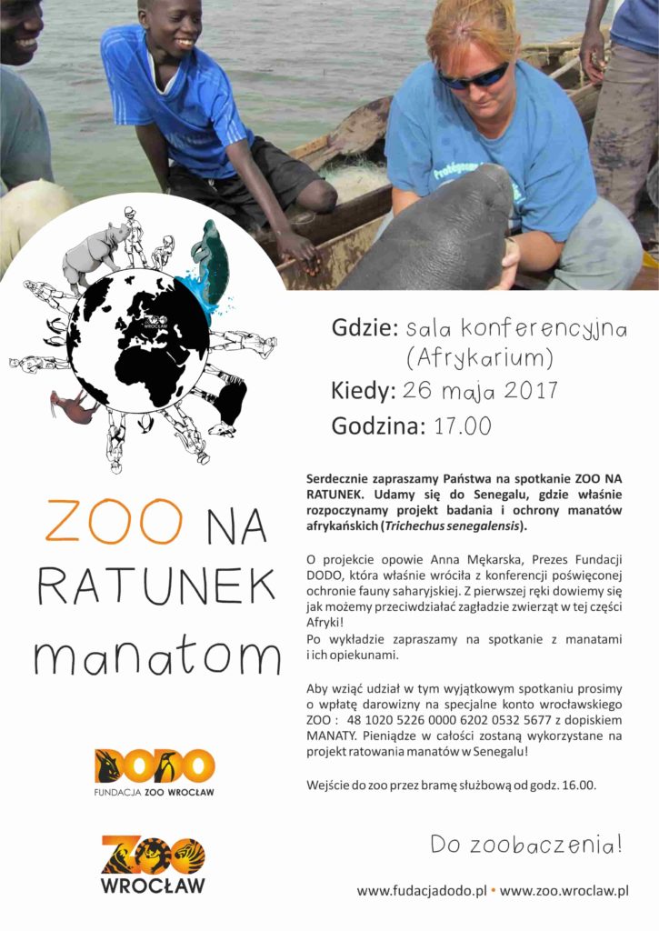 Serdecznie zapraszamy na spotkanie Zoo i Dodo na ratunek w dniu 26 maja 2017! Udamy się do Senegalu, gdzie właśnie rozpoczynamy projekt badania i ochrony manatów afrykańskich.