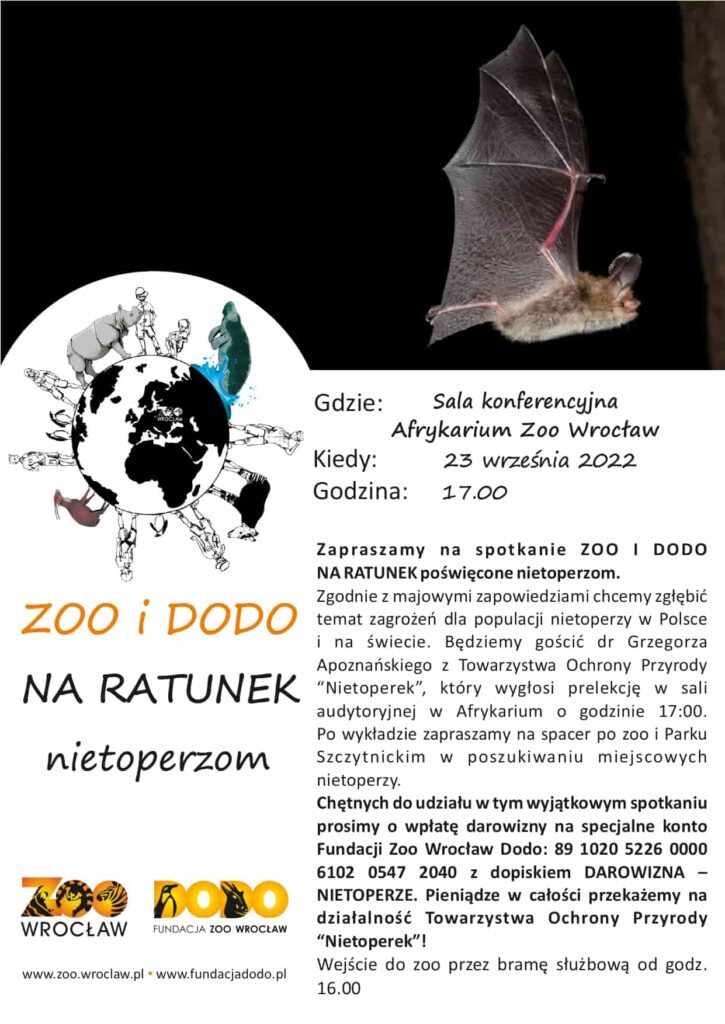 Zapraszamy na spotkanie Zoo i Dodo na ratunek nietoperzom, które odbędzie się 23 września 2022r.