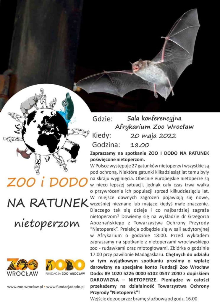 Zapraszamy na spotkanie Zoo i Dodo na ratunek nietoperzom, które odbędzie się 20 maja 2022r.